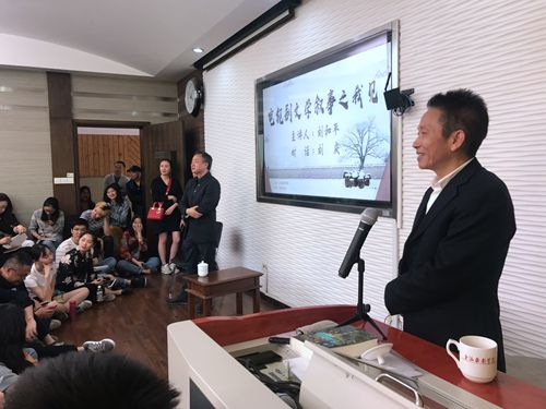 接下来,刘和平教授谈到了语言。他认为诗必须要有两层以上的意思,在戏剧创作中叫潜台词,在写人物时,要写出人物隐蔽的行为动机和深层的心理奥秘。因为戏剧的语言文字,要通过演员角色亲口对观众说出来,所以必须是文学叙事、诗的语言。刘和平教授提到古文运动,呼吁在当今经济发展迅速并且越来越信息化的时代,仍然需要能够传递有思想力的文学作品。同时,刘和平教授提出“国事往家里写,大事往小里写”,要在表达宏大叙事、思想和精神的时候,关注到每一个个体生命存在的价值。