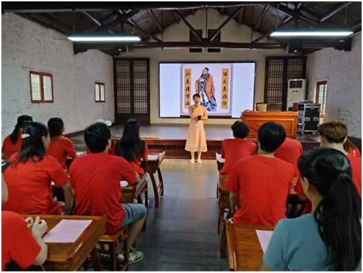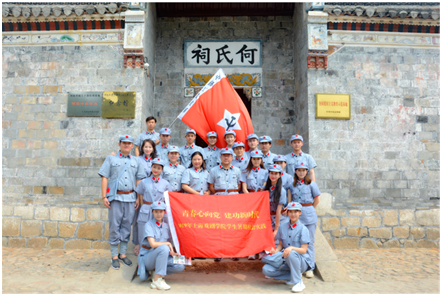 同时,为迎接即将到来的新中国建国70周年,深入贯彻落实习近平总书记关于弘扬爱国主义教育的重要讲话精神,重温革命之路,感受红色之光。另一部分师生组成了参访交流实践队,一行人上午以“重走革命老区,领悟红色精神,传承红色基因”为初心来到了位于信阳光山县砖桥镇的刘邓大军王大湾会议旧址纪念馆、邓颖超祖居等进行参观与学习。感受到了革命先辈刘伯承、邓小平千里跃进大别山的不易,全方位地了解了邓颖超同志光辉的一生和邓家的历史,同时也欣赏到祖居古朴典雅的清代徽派建筑艺术风格。