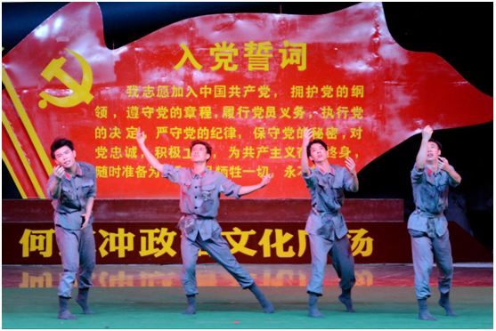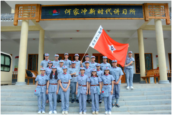 第四天上午,上海戏剧学院暑期社会实践团一行在院长黄昌勇老师的带领下怀着无比崇敬的心情踏上了何家冲这片英雄的土地,穿上红军服,带上红军帽,背上红军包,一路走一路看,拂去历史留下的沧桑,拂去岁月厚厚的封尘,仿佛看得见那烽火连天的画卷,中国革命先辈前赴后继追寻红色信仰的坚贞,共产党人为中国人民谋幸福、为中华民族谋复兴的铮铮誓言!何家冲,是万里长征的起点,是红色信阳的标志。在这里,上戏人找到了红二十五军的军魂;在这里,上戏人找到了梦想的依托;在这里,上戏人寻得了真正的初心。