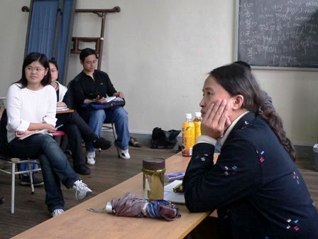 结束第一天培训的时候,同学们用四个字概括了参加本次培训班最直接的感受――受益颇多。复旦大学的张躬同学说:“老师讲的内容很有价值,开阔了自己的眼界。”上海电力学院的刘丽娟同学说:“今天终于感觉到了什么叫专业,学习到了许多专业的知识,对于艺术也有了新的认识。”同济大学的万枝同学则表示:“就编剧课来说,我觉得对话剧光有感觉还不行,还要进行理性、理论性的分析;就导演课来说,我发现自己很放不开,演不好就难导好。”