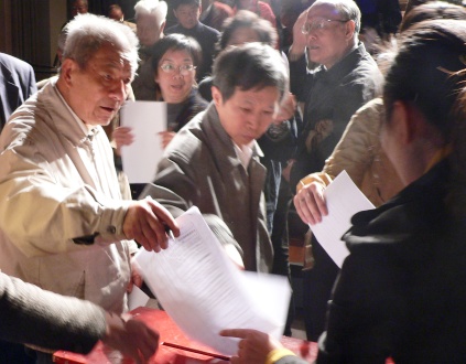 胡导老师(左)投下庄严的一票