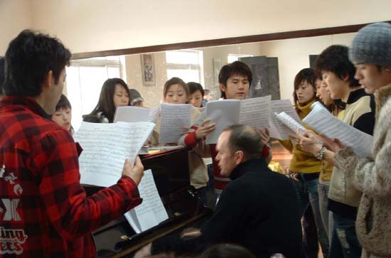 继2005年5月、9月我院表演系学生与美国蒙特克莱尔州立大学的学生分别在上海和美国新泽西同台演出了美国名剧《餐厅》之后,两校新一轮的合作又开始启动。从12月19日开始,来自美国蒙特克莱尔州立大学的Timothy Herman 教授、Clay James教授为上戏表演系03级音乐剧班进行为期两周的音乐剧演唱与舞蹈训练。