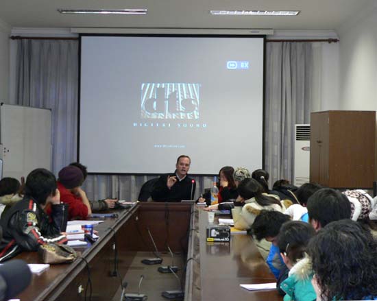 在两个小时的讲座时间里,Herman教授用音乐剧片断加解说的形式,介绍了百老汇歌剧从最初到现在的发展过程与不同阶段的特点。现场,播放了《Sweet Charity》、《唐吉诃德》等著名歌剧的演出片断,原汁原味的演出让在场的师生都深深沉浸在音乐剧的世界中。