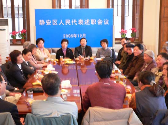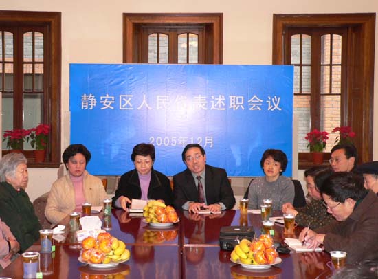 12月29日上午,静安区人民代表述职报告会议在上海戏剧学院佛西楼老干部活动室召开。来自静安区的三位人大代表在会上作述职报告,25位不同单位、街道的群众代表出席了会议。