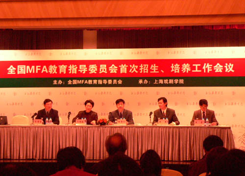 4月27日,全国MFA教育指导委员会首次招生、培养工作会议在上我院隆重召开。国务院学位委员会李军副主任、教育部体卫艺司杨贵仁司长、文化部教科司王丰副司长以及全国各试点院校的有关负责人出席了会议。上海市教委副主任王奇到会祝贺。