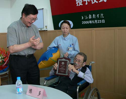 5月23日,上海戏剧学院党委书记贺寿昌代表学院为著名戏剧艺术教育家陈多先生颁发了“上海戏剧学院戏剧教育终身荣誉奖”。上海老干部局副局长方孔嘉、上海市科教党委老干部处领导以及学院党政领导葛朗、韩生等师生代表出席了颁奖仪式。