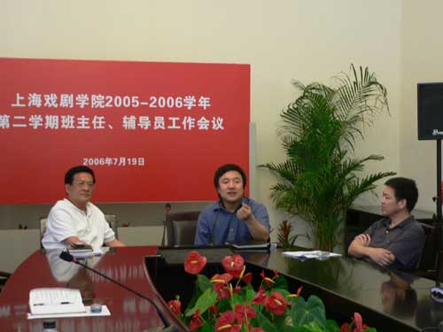 7月19日上午9时,上海戏剧学院2005-2006学年第二学期班主任、辅导员工作会议在佛西楼会议室举行。院党委副书记、副院长葛朗,副院长韩生,学生处处长邱中岳,教务处副处长吴爱丽以及学院各系的班主任、辅导员参加了会议,会议由学生处处长邱中岳主持。