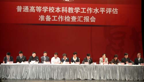 06年9月14日,评估组专家一行莅临我院检查指导评估准备工作。上午八点半,欢迎仪式和汇报大会在小剧场举行。