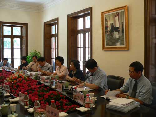 嬴枫组长首先从总体上对我院评估准备工作进行了评析,肯定了上戏领导和广大师生员工在迎评过程中的成绩;同时,就目前存在的问题提出了整改意见和建议。组长还希望上戏领导对专家组的工作如何搞得更好多提意见。宋烈侠等其他专家分别就各自分工负责的指标体系内容,发表了意见。