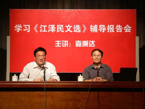 讲座上,袁秉达教授紧紧围绕《江泽民文选》的核心内容,结合自己的研究思考,深入浅出地阐述了《江泽民文选》的背景、结构和特点以及学习《江泽民文选》的重大意义。报告内容丰富、思想深刻,对我院全体党员深刻领会、全面把握《江泽民文选》的科学内涵和精神实质,进一步高举旗帜,推进实践,增强社会发展的责任感和使命感,起到了重要的教育和促进的作用。(宣传部)