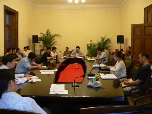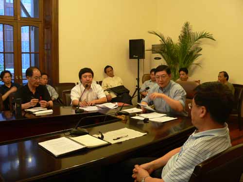 06年10月16日下午,我院党委中心组在佛西楼交流学习十六届六中全会精神。会议由院党委书记贺寿昌主持。学院领导、全体中层干部、各支部副书记参加了会议。(宣传部)