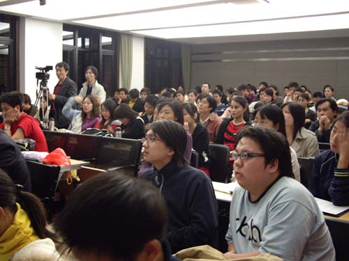 讲座过程中崔教授与在场的师生们展开了热烈的富有成效的讨论,更进一步带动了整个会场气氛。所提出的问题既包括了学术问题,如纪录片的真实性和假定性,也包括现实问题,如导演与剪辑师的关系处理等等。这一系列问题的提出与探讨可以说对每个人都产生了各自的答案,也使得这个讲座更为贴近真实的艺术。