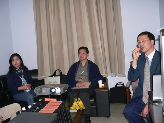 图为戏文系主任宫宝荣在做评估工作汇报