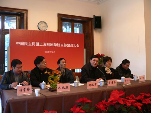 06年12月29日,中国民主同盟上海戏剧学院支部换届选举大会在熊佛西楼老干部活动室召开。民盟上海市委副主委鲍敏中、我院党委书记贺寿昌到会并讲话,院统战部部长黄桂英、民盟市委组织部联络员王子昂应邀出席,民革等我院民主党派成员代表到会祝贺。