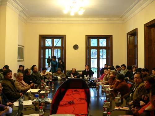 07年1月12日下午,由我院演出专家委员会、教务处、编辑部、宣传部主办,教务处教学演出实践科承办的《死无葬身之地》研讨会在我院佛西楼会议室召开,院领导韩生、孙惠柱以及来自校内专家、学者、观众代表、《死无葬身之地》主创人员及剧组学生40余人参加了会议。