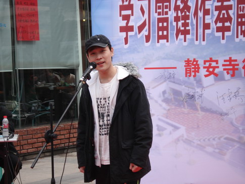 在纪念毛主席为雷锋同志题词纪念日即将到来之际,3月3日下午,我校的“防艾亲青”文化志愿者参加了在静安公园举行的以“学习雷锋做贡献 共建和谐树新风”为主题的静安区街道学雷锋主题活动,展现了我校志愿者们主动参与社区活动,服务社区、服务上海的良好精神面貌。电视学院03级的赵路同学还代表学校在活动现场表演了精彩的节目,受到观众好评。(团委)