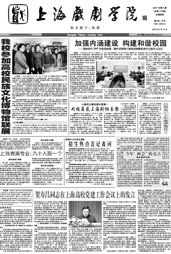 在新的一年到来之际,我院《上海戏剧学院报》也以新的版面、新的样式、新的风貌同大家见面了!扩版后的《上海戏剧学院报》2007年第1期得到了读者的广泛好评,现《上海戏剧学院报》2007年第2期也已出版,电子版已上传,欢迎点击上戏新闻中院报栏目下载观看。