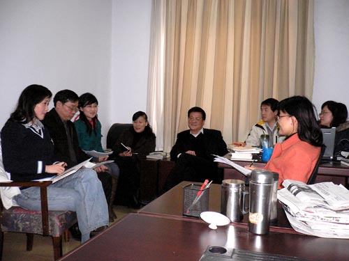 2007年3月21日(星期三)上午,在公教部办公室召开了第四次编写马克思主义文艺观教材研讨会。课题组组长、党委副书记、副院长葛朗老师主持了本次会议,课题组成员张生泉、陈敏、桑新梅、施华东、吴沛涓、李冬梅、章文颖参加了本次会议。