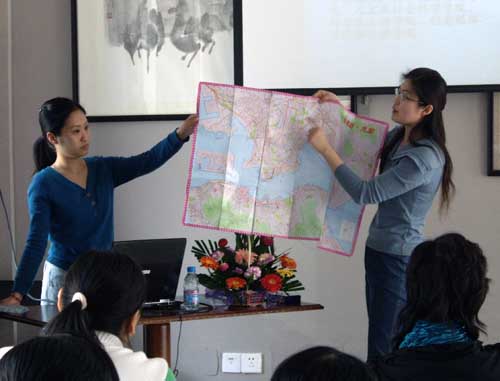 交流活动主要从四个发面展开,包括对城大的简单介绍,学校的课程设置,课余生活及校园文化等。石昊和蒋诗洁同学还制作了图片展板供大家参观。为了使同学们更直观地了解相关情况,她们还带来了很多实物,如香港地图、学生证、课程资料等,结合自己在城大学习、生活的切身体会与大家进行交流,整场活动持续1小时左右,内容丰富且生动有趣。交流会后大家就去香港城市大学学习的准备和申请等问题进行了提问。