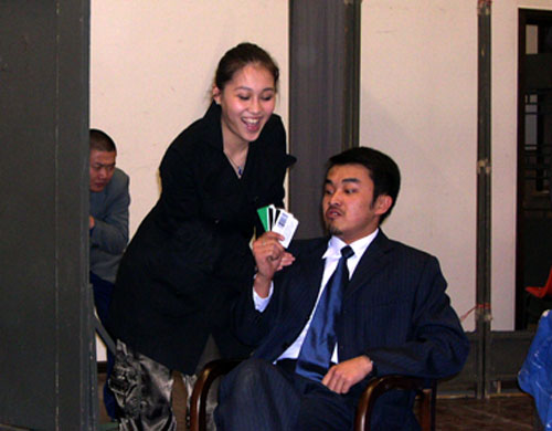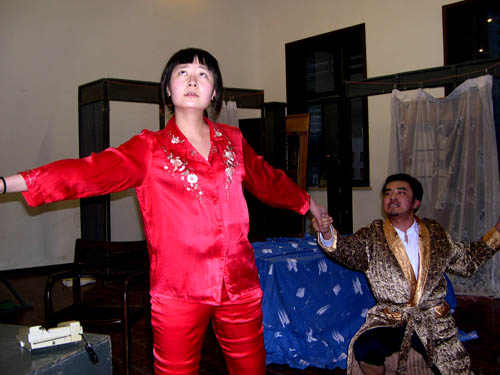 昨晚,我校导演专业05级同学在红楼409进行了陈佩斯先生的原创作品――舞台喜剧《阳台》的第一次联排。这是继3月20日签约仪式后首次对该剧进行教学版改编的尝试。在导演系卢昂、张佳蕾老师的指导下,导05班的学生生动地再现了原版《阳台》中的人物角色,在不削弱其喜剧效果的基础上,结合自己对生活的一些观察和体会对人物进行了二度创造,使人物形象更加贴近生活,表现更加丰满。