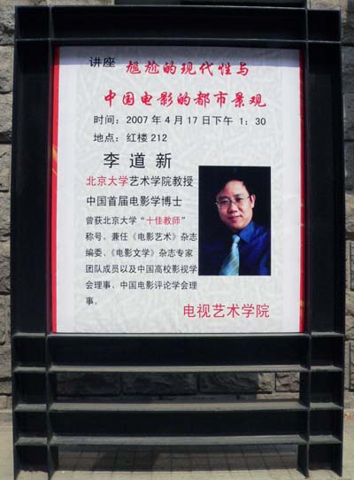 明日下午1:30分,北京大学艺术学院教授、中国首届电影学博士李道新教授将于华山路校区红楼212教室作题为《尴尬的现代性与中国电影的都市景观》讲座。敬请关注。