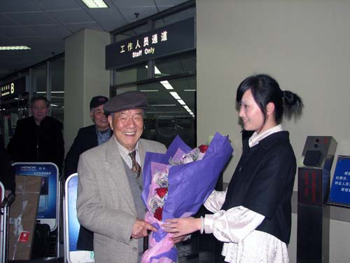 我院组织部部长兼学生处处长邱中岳受院领导委派前往机场迎接,学生代表在机场向老师们献上鲜花,表达了同学们对为中国话剧艺术事业作出巨大贡献的老师们的崇敬之情。