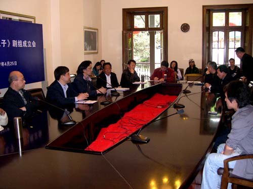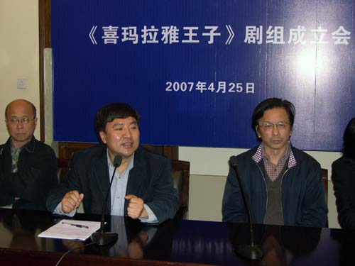 今日下午四点,大型话剧《喜玛拉雅王子》剧组成立会在佛西楼会议室召开。会议由演艺中心艺术总监张仲年教授主持,副院长韩生、宣传部长张生泉、教务处长陈其毅、演艺中心王履伟等相关同志出席。索朗绕登、德庆卓玛、多布杰、洛丹、索朗仁次、索朗桌嘎等西藏班五代学员参加了剧组成立会。洛丹首先代表西藏话剧团发言,感谢上海戏剧性学院为增进民族文化交流、培养少数民族戏剧艺术人才做出的积极的贡献,没有上海戏剧学院就没有西藏话剧团。多布杰在随后的发言中表示,虽然他已经取得了一定的成绩,但在老师面前,他永远都是学生。