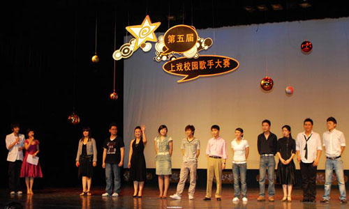 第五届上戏校园歌手大赛决赛昨晚在上海戏剧学院莲花路校区举行,12名从初赛中脱颖而出的选手进行了角逐。我校表演系,电视艺术学院,戏曲学院的声乐教师担任本次大赛的评委。比赛中不仅选手表现出色,各个粉丝团也十分热情,为选手加油助威,现场一片热闹,气氛高涨。