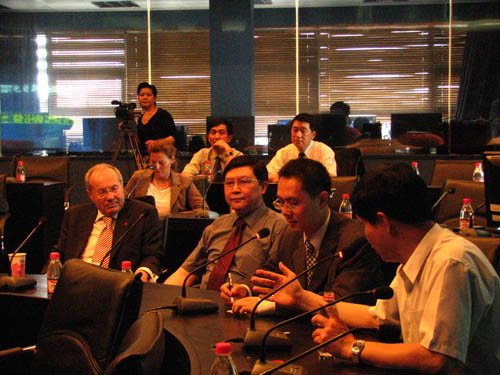 5月21日下午,德国法兰克福市议会议长布尔曼(Karlheinz Buehrmann)先生率领法兰克福代表团一行11人来我院考察“戏剧大道”项目,我院党委书记贺寿昌、副院长孙惠柱等会见了德国法兰克福市议长代表团。经上海市人民对外友好协会的联络,德国文学巨匠歌德诞生地――法兰克福市政府对“戏剧大道”项目表示了浓厚的兴趣,会谈期间,我方向来宾介绍了戏剧学院的概况,并展示了已经落成我院的三个雕像的图像资料。在了解了戏剧大道的进展情况之后,法兰克福市议长代表团与我院重点商讨了向戏剧大道捐赠雕像的事宜。