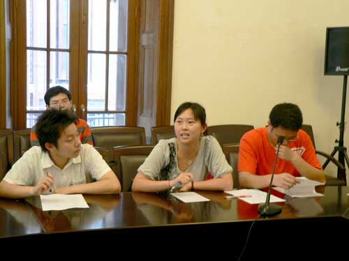 图为戏文系同学代表在座谈会上发言