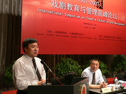 在上午的第一场发言中来宾分别进行的精彩主题发言有:上海戏剧学院副院长韩生做《大戏剧教育观》主题发言;上海戏剧学院表演系教授陈明正做《回顾上海戏剧学院表演系的风雨六十年――为纪念中国话剧诞生百年而作》主题发言;上海戏剧学院导演系教授胡导做《导演教学要发展,要持续发展》主题发言;上海戏剧学院戏文系教授荣广润做《实践能力训练与专业基础并重――戏文系人才培养之道》主题发言;上海戏剧学院舞美系教授丁加生做《往后看――舞台美术教学回眸》主题发言;上海戏剧学院戏曲学院教授宋捷做《中国戏曲的导、表演教学》主题发言。
