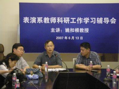 6月13日(周三)中午十二点三十分,表演系科研工作学习辅导会在佛西楼会议室举行,会议邀请了科研处处长姚扣根教授为表演系全体教师讲述科研的申报方法以及注意事项。表演系主任龙俊杰老师、党支部书记张生泉老师、副主任何雁老师、副书记王学明老师出席,表演系全体教师参加了本次会议。