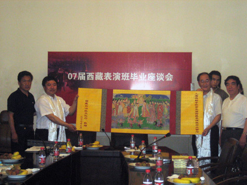 会上,07届西藏班主要任课老师纷纷发言,回顾师生3年来教学相长的累累硕果和深厚友谊,令在场的人无不动容,落下了难舍的热泪。西藏自治区文化厅党委书记马如龙、西藏话剧团团长次仁罗布也先后发言,感谢学校对西藏班的培养和教育,并代表西藏自治区文化厅向学校赠送了礼物。