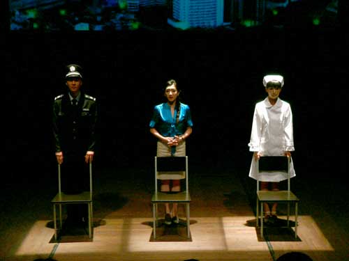 昨晚,04级表演系・舞美系实习演出剧目《都市夜话》,结束了为期8天的首轮演出,这是近年来我校首出由本校戏文系的学生创作的本子;反映当代社会、当代人的实习剧目。同时也是首出由表演系、舞美系、继续教育学院、电视艺术学院四个院系的学生共同创作演出的剧目。此外,这还是首出先期有外景拍摄的实习剧目……这许许多多的第一也就意味着要搞好这出戏的难度。但是全剧组的人员并没有退缩,而是在洪彬导演的带领下一步一步地向成功迈进。
