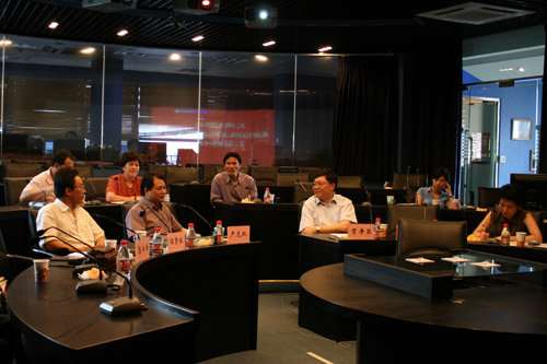 今日下午3时,文化部教科司领导考察调研创新奖项目座谈会在虚拟实验室召开。文化部科技司处长严先机、中国艺术科学研究所工程师闫贤良、中国艺术科学研究所工程师乌日乐、上海市文广局科技处王学勇参加了座谈会,我校党委书记贺寿昌、党办副主任黄桂英及虚拟实验室有关负责人参加了会议。会议由上海市文广局科技处王学勇主持。