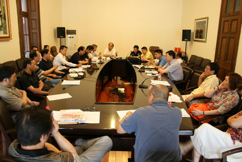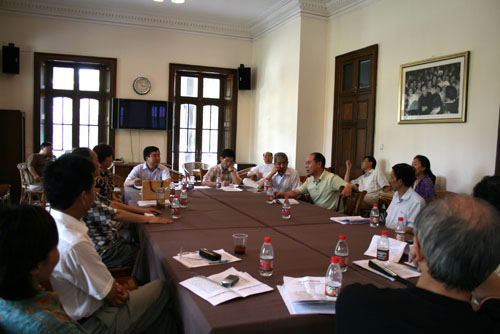 今日下午,我校2007年教学管理工作会议分组讨论部分分成四组,在佛西楼会议室、红楼201室、老干部活动室、紫藤庐等会场对上午的教学管理工作会议进行了讨论。