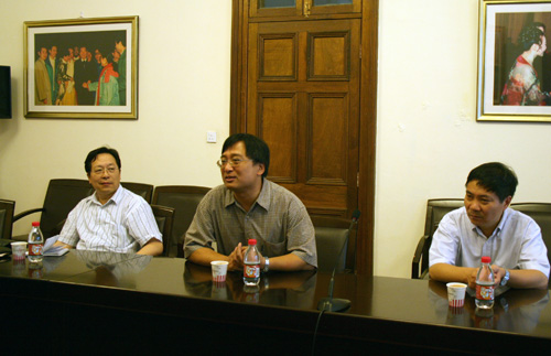 随后,莫主任一行来到佛西楼会议室,基建处处长范和生、副院长刘志钢、副院长韩生先后介绍了剧院建设中的具体情况和相关问题,就剧院的下一步建设进展进行了讨论。