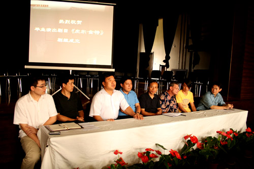 今天下午1点半,毕业演出剧目《培尔・金特》剧组成立仪式在东排举行。副院长韩生、副院长孙惠柱、表演系主任龙俊杰、舞美系主任刘永华、导演Mark Hall Amitin、谷亦安教授及04级表演系、导演系、舞台美术系同学参加了剧组成立仪式。