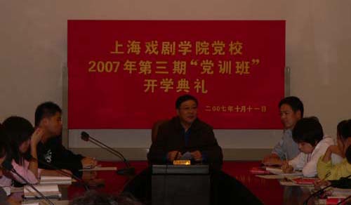 10月11日晚,我校2007年第三期“党训班”在佛西楼会议室举行了开学典礼,来自各院系39名学生参加。开学典礼由学生处处长兼组织部部长邱中岳主持。院党委书记贺寿昌出席并做动员。贺书记指出:当前,举国上下都在喜迎十七大,我们大学生要进一步认识到肩负的使命。贺书记简明阐述了国家、上海、学校的良好发展背景,并从思想、行动两方面对学员提出了14条具体要求。他勉励党训班学员努力学习党的知识,端正入党动机,理论联系实践,提高道德修养,多出优秀作品,以实际行动做一名新时期优秀的党的文艺战线战士。