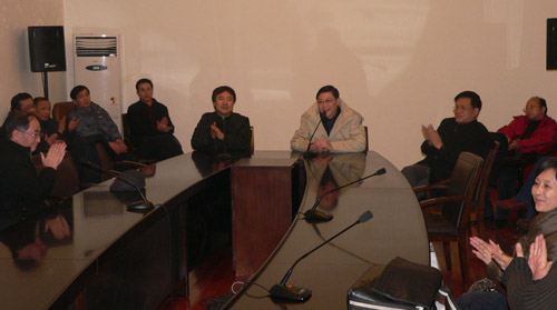中层干部到校后,贺寿昌同志与其他校领导一起会见大家并对新年工作提出要求