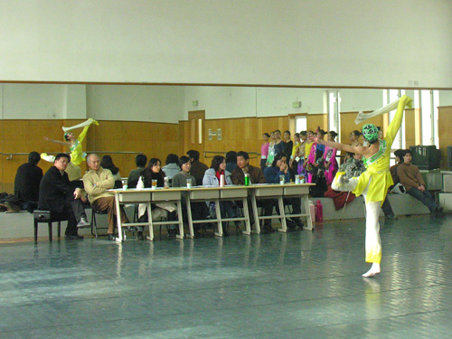 图为葛朗同志(左一)在舞蹈学院考场视察