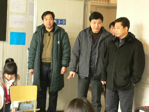 我校主持工作的副院长韩生于今天上午抵达长沙,在教务处处长、招办主任陈其毅陪同下,对长沙考点的工作进行了巡视。韩生副院长指出:我校领导对招生工作一贯重视,特别对外地考点的招考工作一定要用严谨的态度、廉正的作风对待考试,让和广大考生和家长满意。韩生副院长还对考试的一些具体事项作了检查并代表学校对寒假中放弃休息外出的各位专业老师和干部员工表示慰问和感谢。