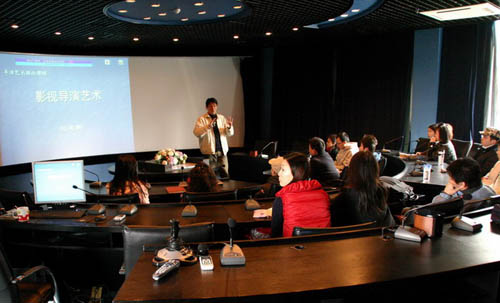 这学期伊始,由刘志新副教授所教授的《影视导演艺术》研究生课程在虚拟实验室开讲,旨在与学院的艺术教育紧密结合,将实验室的研究成果融入到研究生的教学中,为社会培养更多数字艺术的复合型高级人才,充分发挥实验室的数字艺术人才培养的教育基地功能,满足社会对艺术发展的需求。