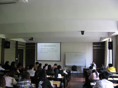 2008年1月1日新的《劳动合同法》推行,为即将走上职场的大学生提供了有力的法律保障。为帮助大学生更好地了解新劳动法,树立维权意识,郭老师通过具体实例,介绍了我国劳动保障立法的情况,劳动合同法的主要内容以及影响就业的若干因素等,给学生不少启发。(文图/徐莹 编辑/雨田)