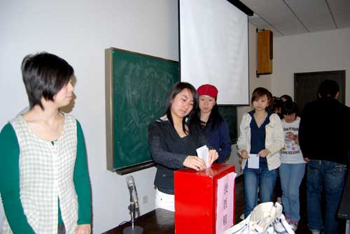 图为学生代表投票
