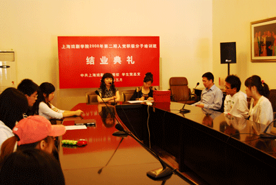 5月11日下午,上海戏剧学院2008年度第二期党训班结业典礼在熊佛西楼会议室举行。组织部部长兼学生处处长邱中岳老师出席。结业典礼由党训班班主任徐莹老师主持。