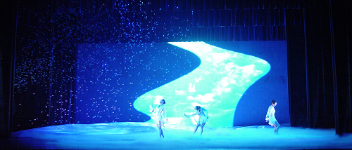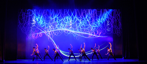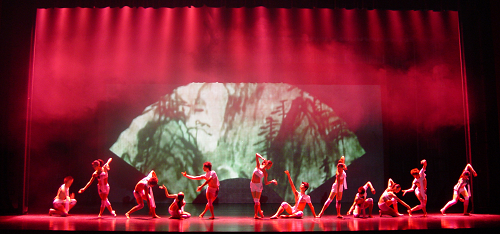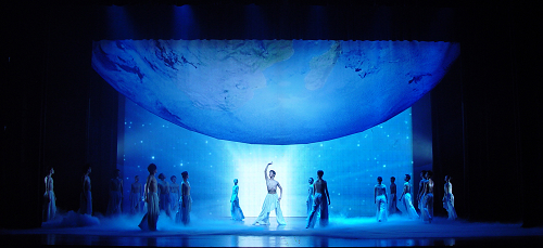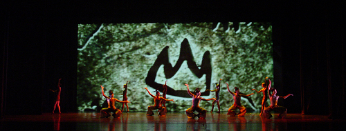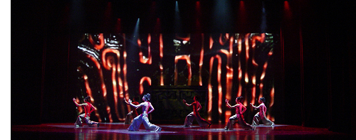该项目总导演刘志新老师介绍说:新媒体舞诗《文明・图腾》是2008年上海市教育高地项目,主要以虚拟实验室、舞蹈学院、导演系、戏文系、舞美系、戏曲学院、电视艺术学院等部门的年轻老师为骨干创作团队,用集成创新的思路,将信息技术与学校独特的艺术创作资源结合在一起,创新性地把舞蹈语汇、数字影像、空间造型、环绕音效与光色变化融为一体,形成了一部戏剧、电影、舞蹈、动画、文字、声音等多种媒介元素交互叙事的新媒体舞蹈诗。