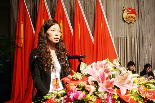 团市委学校部部长金梅同志也作了发言,首先代表团市委向大会的顺利召开表示祝贺,肯定了在过去五年共青团上海戏剧学院委员会的做出的努力与取得的成绩,希望在未来的日子里,能够再接再厉,再创辉煌。