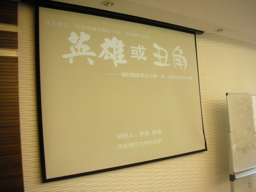 6月12日下午,表演系从文读书会有幸请来了华东师范大学中文系罗岗教授作题为《英雄或丑角――“新时期文学三十年”与“当代文学六十年”》的讲座,这次讲座是从文读书会本学期“纪念改革开放三十年”读书活动之一。参加本次讲座的有来自各个院系的研究生与本科生。讲座在红楼209教室举行。