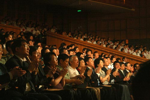 经过半个多月的紧张准备、特别是经过我们上海戏剧学院有关师生的热情参与,上海市卫生系统抗震救灾主题活动昨天(17日)晚上在上海大剧院获圆满成功。市领导殷一璀、沈晓明,市科教党委领导和市卫生局领导等出席昨天的活动并且高度肯定我校所做贡献。我校党委副书记、副院长葛朗,主持工作的副院长韩生以及党委宣传部部长张生泉,导演系主任卢昂,电视学院副院长吴洪林等出席活动。出席活动的还有全市医务系统干部和群众、部分高校领导共计1000多人。
